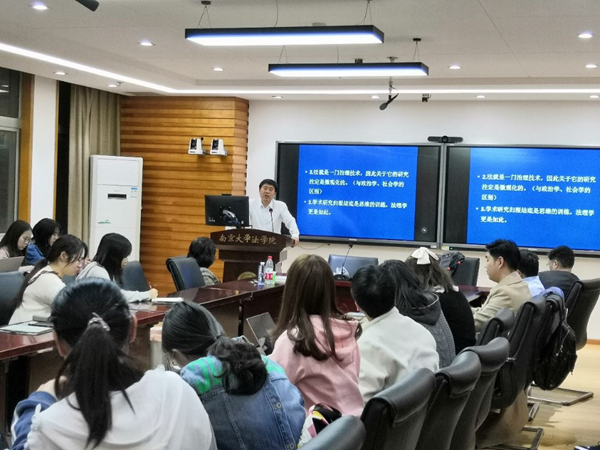 随后,李拥军教授开始为大家介绍本次讲座的主要内容。首先,李拥军教授从自己的研究经验出发引出何为法理学的思维,李教授认为法理学思维是一种兼具反思性和敏感性的学术研究思维,并在此基础上指出了法理学与部门法的研究区别。紧接着李教授深入浅出地剖析了法理学思维的特点,他认为法理学研究是理论的、微观的和学术的。接下来,李教授还结合具体的实例生动地讲解了研究生应当如何利用法理学思维进行论文写作和学术研究,李教授认为好论文是磨出来的,论文应当要为“问题”而作,在此基础之上,李教授提出了学术研究和写作的四个层次。在讲座最后,李教授特别强调了论文写作的中国问题和中国意识,以及法理学人如何“读”和“写”。整场讲座时间持续将近两个半小时,讲座内容干货满满,讲座风格生动有趣。