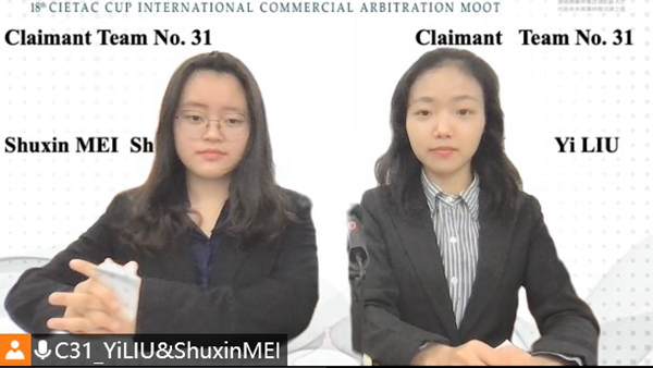在11月16日至11月18日为期三天循环赛中,我校代表队主力辩手梅淑昕、刘奕在全英文“贸仲杯”模拟仲裁庭辩论赛中表现出色,沉着冷静地应对仲裁员的提问,展现了我校伊莉影片