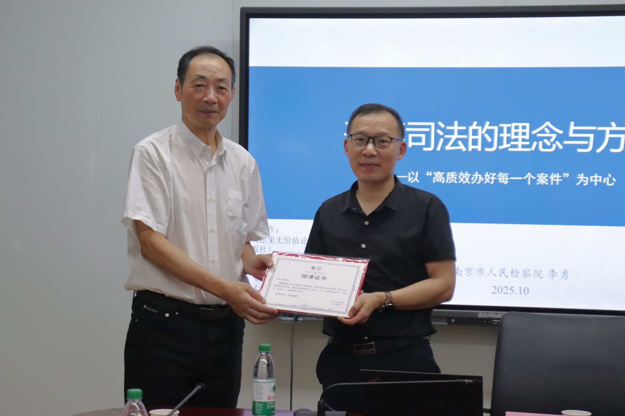 2025年10月10日,最高人民检察院“检察实务专家进校园”第六讲在西南楼227会议室成功举办。南京市人民检察院法律政策研究室主任、三级高级检察官李勇以“刑事司法的理念与方法——以‘高质效办好每一个案件’为中心”为主题进行授课。