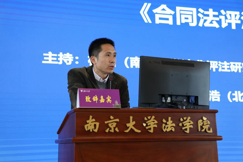 蒋浩副总编辑在致辞时指出:《合同法评注选》是汉语法学第一部严格意义上的法律评注。这本评注书体现了实务与理论的有益互动。作为出版社而言,非常赞赏并推荐此种法学学术的研究写作方式。与此同时,《刑法典评注》也在审定当中。在审定的过程中,可能会以《合同法评注选》作为审慎考量和参照的蓝本。同时,蒋浩表示,法律学者有义务关注互联网新技术时代出现的新型社会问题,并要为这些新的问题、新的典型案例提供理论支撑及立法前瞻。最后,蒋浩副总编辑对《法学家》杂志以及高圣平老师为这本评注书所作的铺垫工作和前期贡献表示感谢,并对《合同法评注选》的正式出版表示期待。