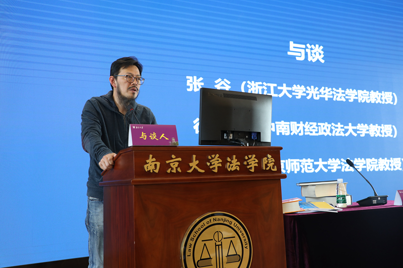 眭鸿明教授与谈发言。眭教授首先对朱庆育教授以及众多的参与法典评注事业的学者表示肯定和感谢。接下来,眭教授指出了法典评注对制定法的可操作性补充和矫正作用。眭教授进而表示:在我国法律继受和移植的大背景下,外来法律制度如何扎根和适应中国实践,也是可以通过法典评注作出努力的。最后,眭教授期待正在开展的法典评注事业可以准确把握时代性、历史性和实践性三个维度,取得更大的发展。