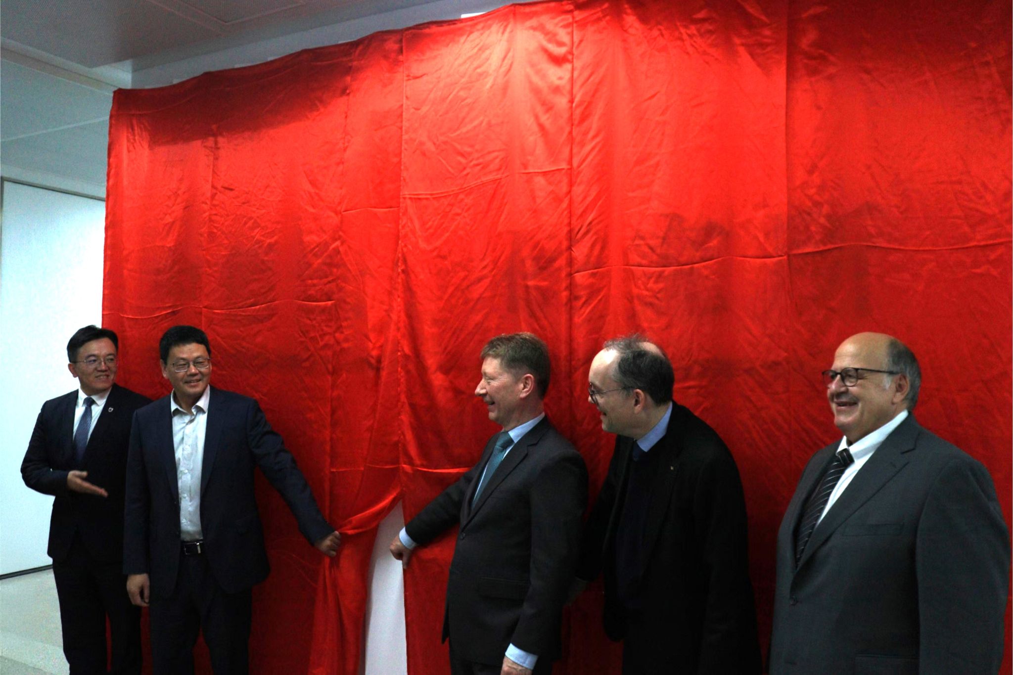 在热烈的氛围中,与会嘉宾为中德法学研究所新址揭牌,这标志着双方合作办学新篇章的开启。