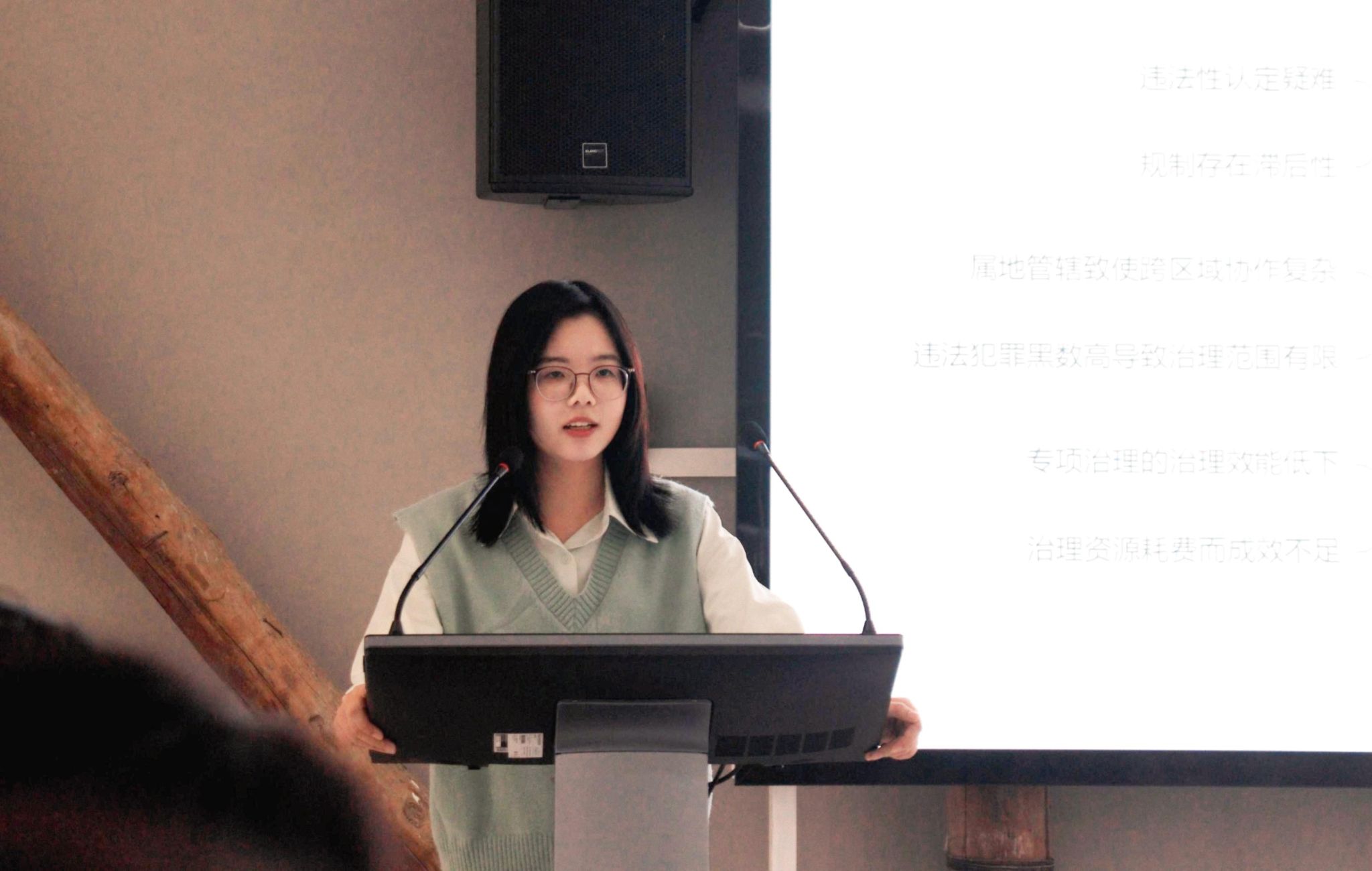 博士研究生郑慧以《预防导向的网络黑灰产治理》为题作报告,阐述了“看门人治理”的理论基础与实践进展。网络黑灰产在犯罪的上游、中游、下游,分别起着提供犯罪工具、辅助犯罪行为、掩饰犯罪所得的危害作用。报告人介绍了看门人理论的发展脉络。该理论经过不断深化发展,为基于互联网平台等市场主体的看门人治理和预防性治理提供了坚实的理论基础。预防性治理在实践中已取得了非常充分的成绩,即在技术层面、组织层面和制度层面完成了治理模式的重塑。预防性治理面对技术创新产生的数据风险、算法风险和权力风险,应当在法律规制层面实现实体程序和规程的紧密配合和完善。随着技术组织和制度层面的革新,仍然存在许多问题值得我们进一步深思和讨论。