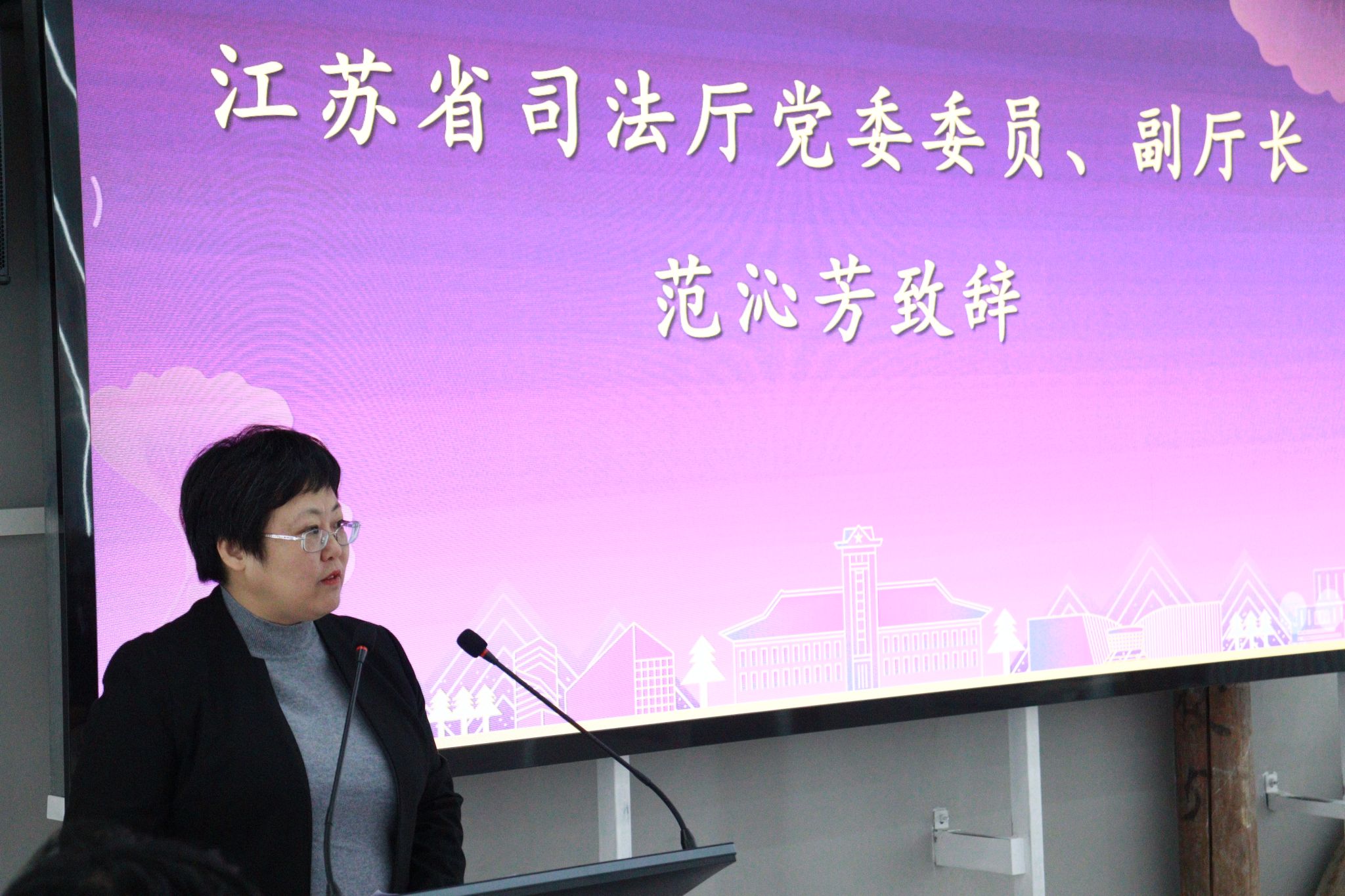 论坛开幕式由伊莉影片 纪委副书记、研究员王丽娟主持,江苏省司法厅党委委员、副厅长范沁芳,伊莉影片 校长助理李斌出席开幕式并致辞。