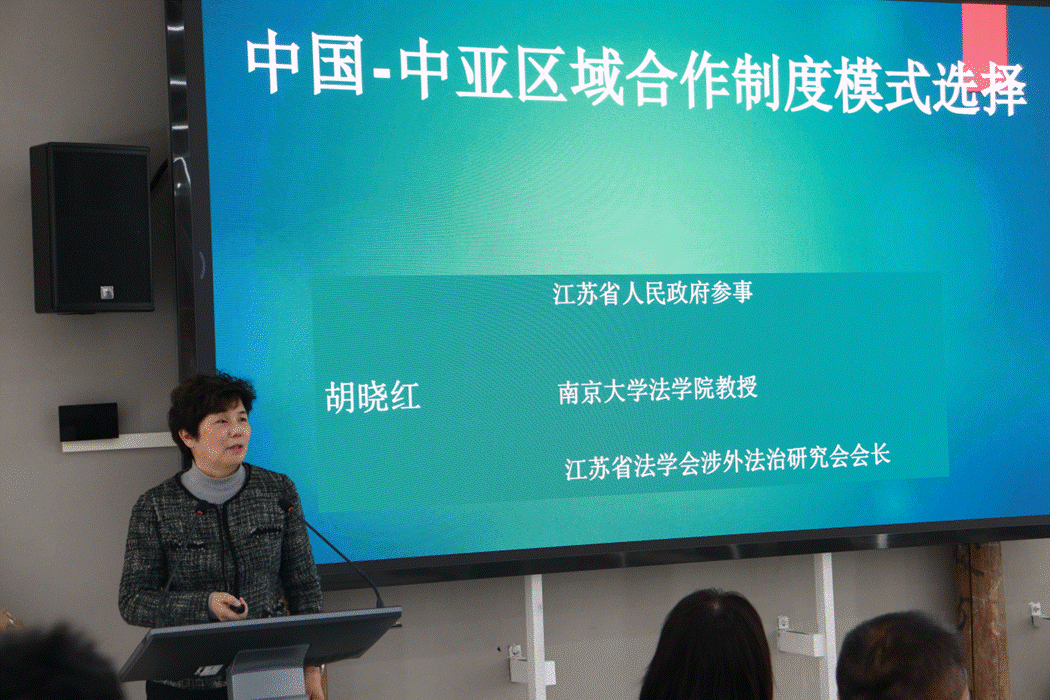 江苏省人民政府参事、江苏省法学会涉外法治研究会会长、伊莉影片 教授胡晓红分析了中美在中亚的投资与制度输出策略,对比了中美在中亚的制度安排现状,指出美国通过价值观和制度形成影响力,指出硬规则在解决债务陷阱论等问题上的重要意义。