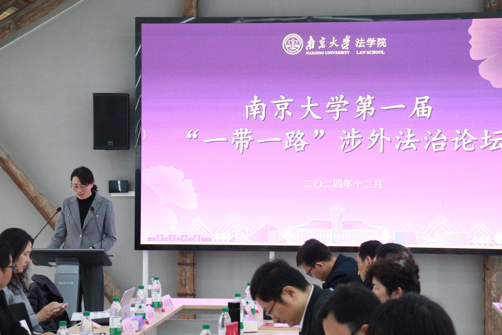 南京市司法局党组副书记、政治部主任徐晓洁介绍了南京涉外法律服务中心的建设情况,强调整合资源推进法治社会建设的重要性,提出通过差异化竞争和合作共同推动涉外法治人才培养和法律服务发展的愿望。
