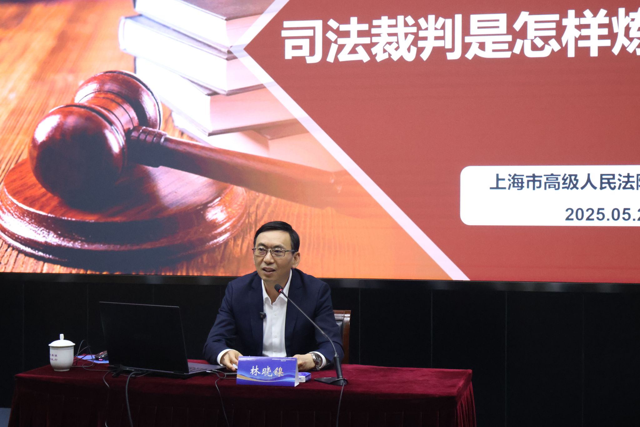 启动仪式后,上海市高级人民法院党组成员、副院长,一级高级法官林晓镍为在场师生们带来本次巡讲活动的首场实务讲座——《司法裁判是怎样炼成的》。