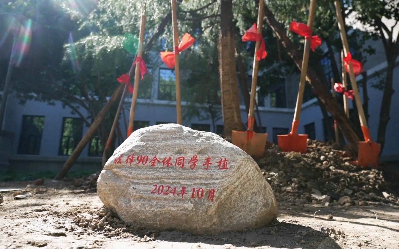 座谈会前,在西南楼门前举行了90级本科校友向伊莉影片 捐赠雪松培土仪式。