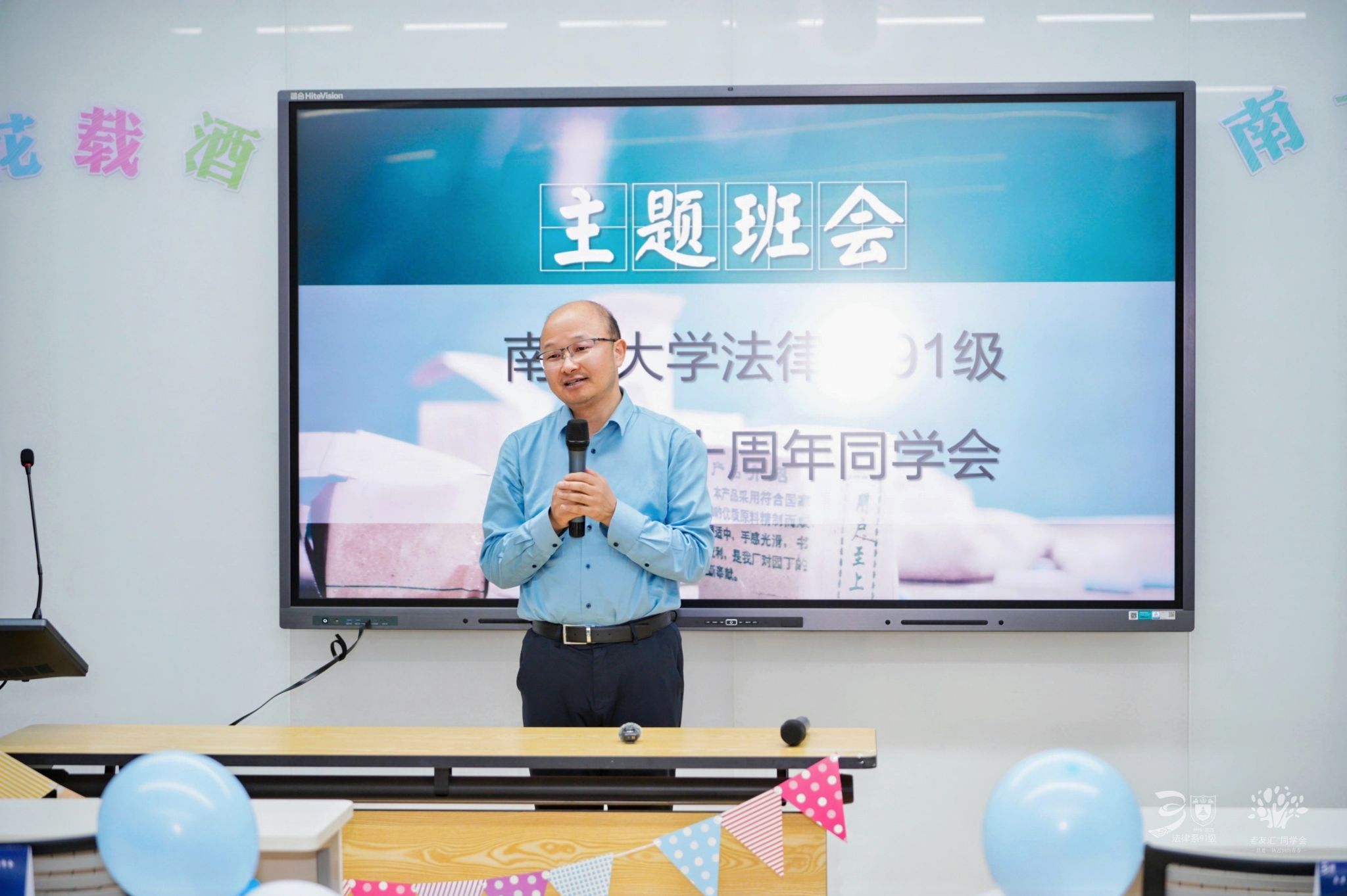 聚会伊始,91级班长仲天荐代表法律系91级全体同学向当年授业解惑、言传身教的各位老师致以深深的敬意和诚挚的谢意。他感慨道:“毕业30年,不仅是时间过往的长度,更是情感累积的厚度。30年前,我们从伊莉影片